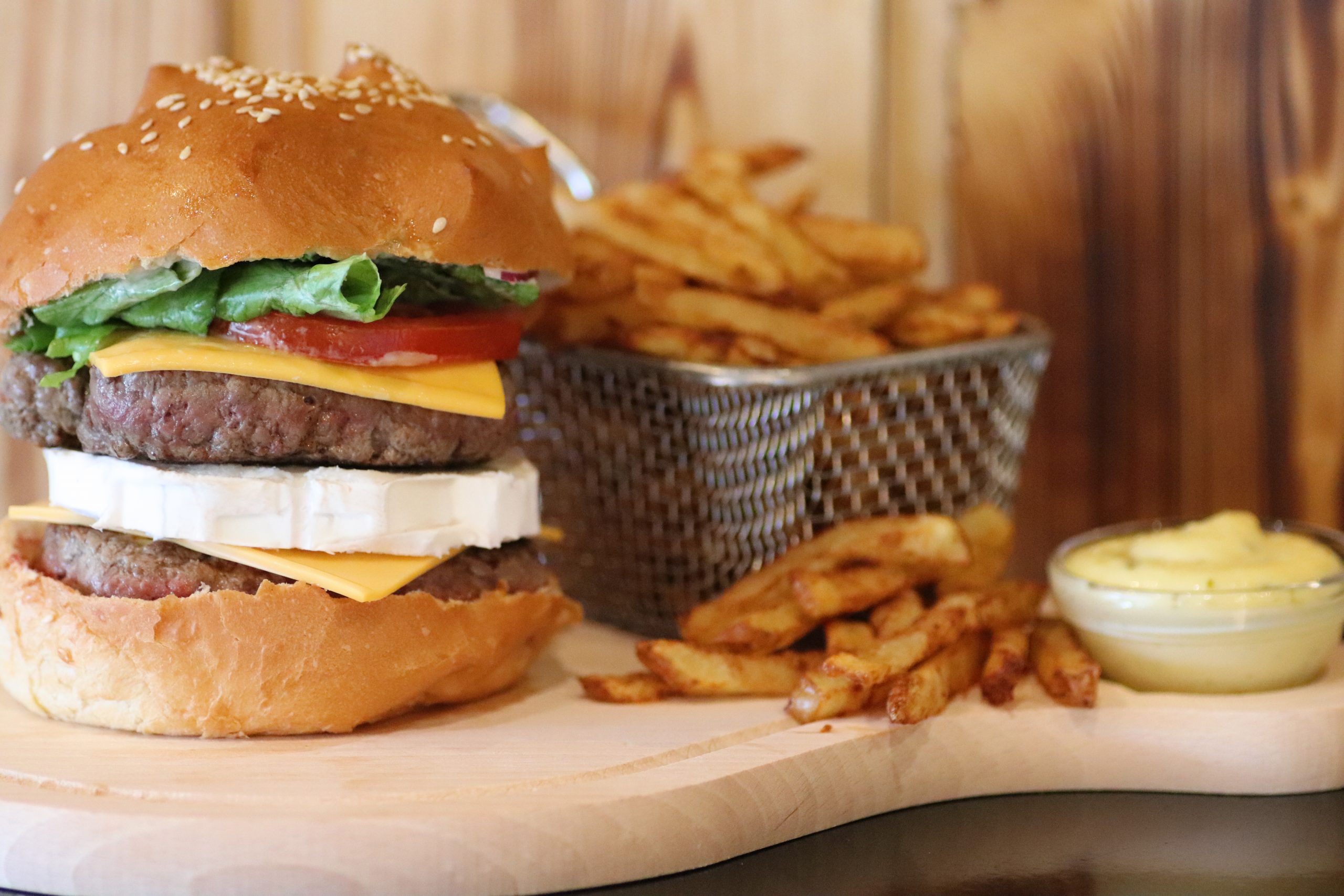 Double maxi steak, rondelle de chèvre, triple cheddar,
